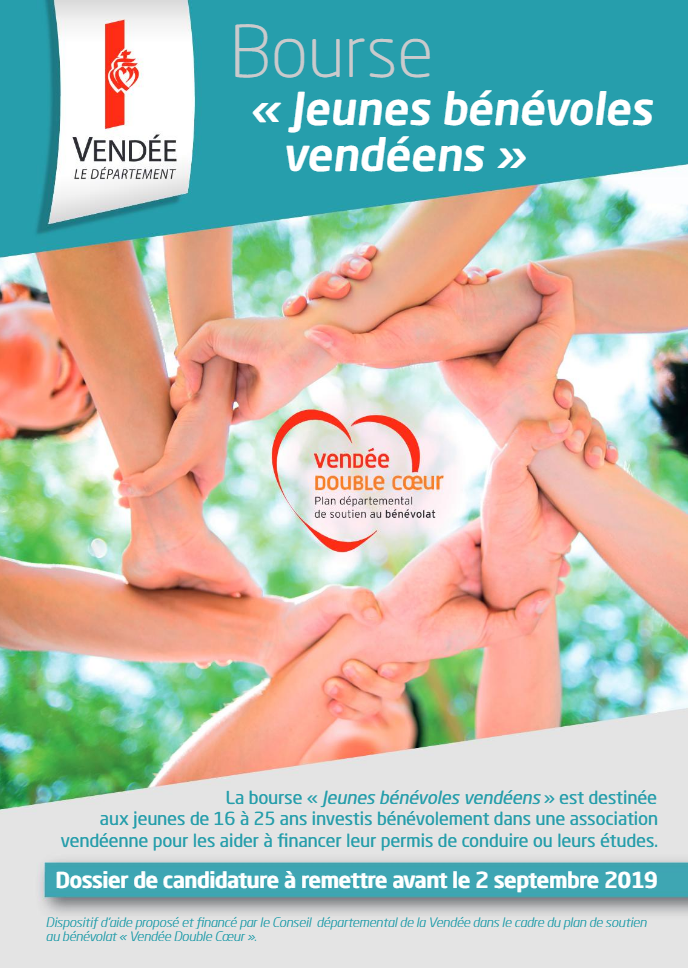 Encourager, valoriser et montrer en exemple les jeunes qui s’impliquent bénévolement au service des autres, tel est l’objectif de la bourse “Jeunes bénévoles vendéens” proposée par le Département de la Vendée dans le cadre de son Plan “Vendée Double Coeur”.