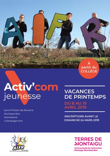 Consultez l’Activ’com Jeunesse Rocheservière pour les activités jeunesse du secteur de Rocheservière pendant les vacances de printemps, du 8 au 19 avril 2019.